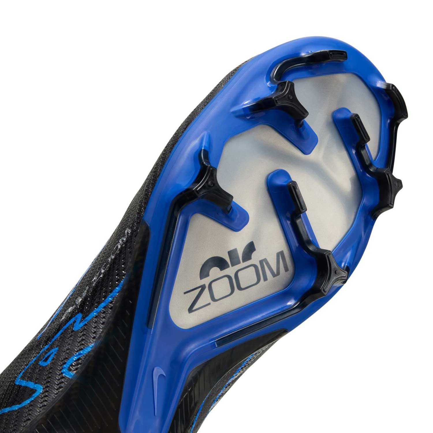 Lleva tu juego al siguiente nivel con las Nike Mercurial Zoom Superfly 9 Elite FG, diseñadas para máxima velocidad, tracción y control en campos de césped natural. Con una elegante combinación de negro con detalles en azul eléctrico, estas botas ofrecen un look moderno y agresivo que destaca en cada jugada.